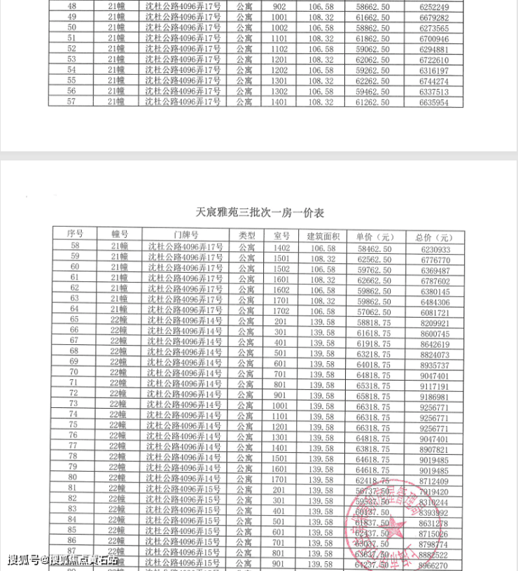象屿天宸雅颂·房价一览表