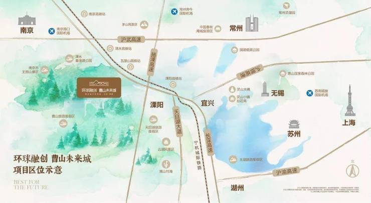 溧阳,世界长寿之乡森林覆盖率高达92%,,江苏省少有的天然氧吧,每立方厘米有约3600个负氧离子。“上有天堂,下有苏杭,出了苏杭,美在溧阳”,溧阳是常州接轨南京的桥头堡,曹山更是进入南京排名前列城,我们未来城项目也被列为江苏省重大工程,总投资超500亿,长三角较具有投资潜力的一个文旅大盘,前期规划约14000亩国际文旅康养度假城,建筑规划占地面积5000亩,剩余90000亩为原始自然风光占地,让你生活在自然公园当中。