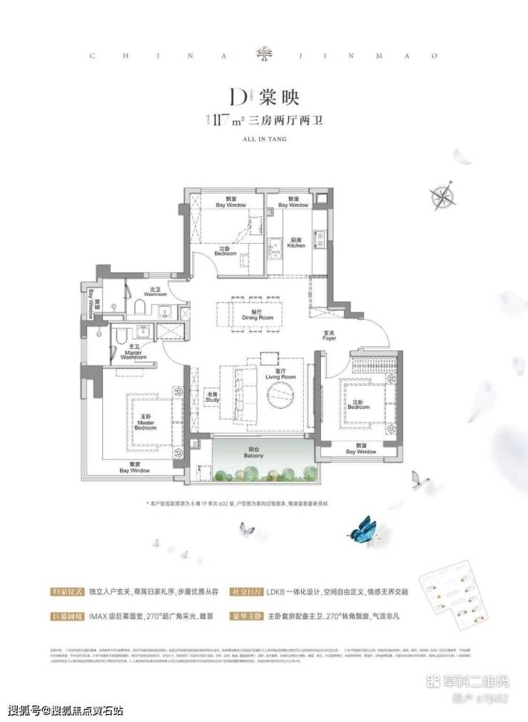 建面约117㎡,参考总价530-660万,三室两厅两卫