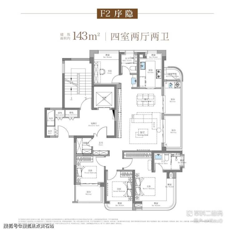 LDKB 一体化阔厅设计,南向 + 东侧环景采光,主卧配备 270° 飘窗,私密与尊崇兼具。