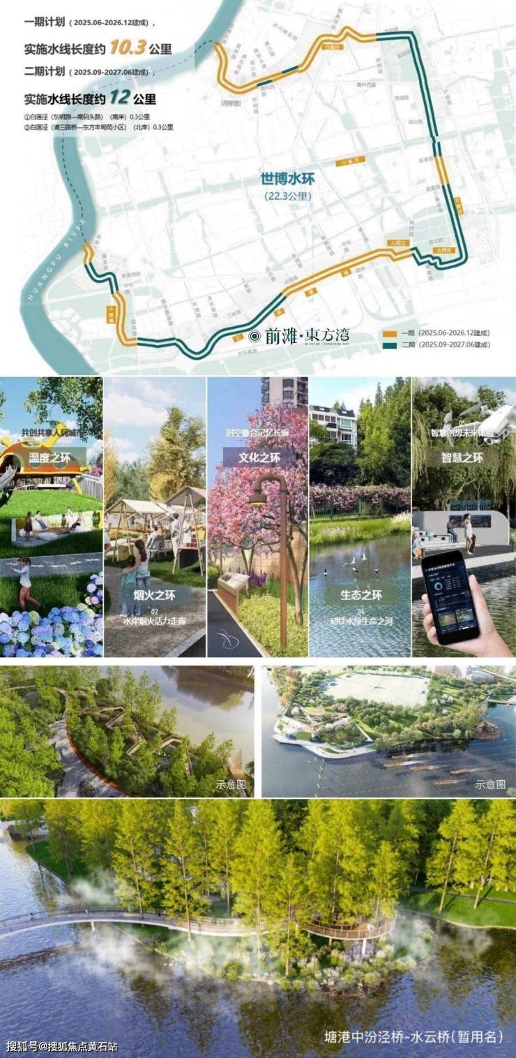 浦东正通过约22.3公里的世博水环,打造“烟火之环、文化之环、生态之环",串联前滩、三林等热门板块,与黄浦江衔接成“O”字环形。本案北邻世博水环生态步道,占据“阳光三林”和'林浦莺飞”双景点。未来沿水将形成主题化、特色化功能的有机聚合,催生新一代国际滨水生活区。