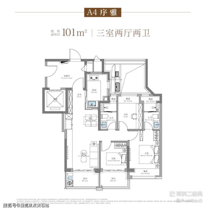 LDKB 一体化阔厅设计,南向 + 东侧环景采光,主卧配备 270° 飘窗,私密与尊崇兼具。