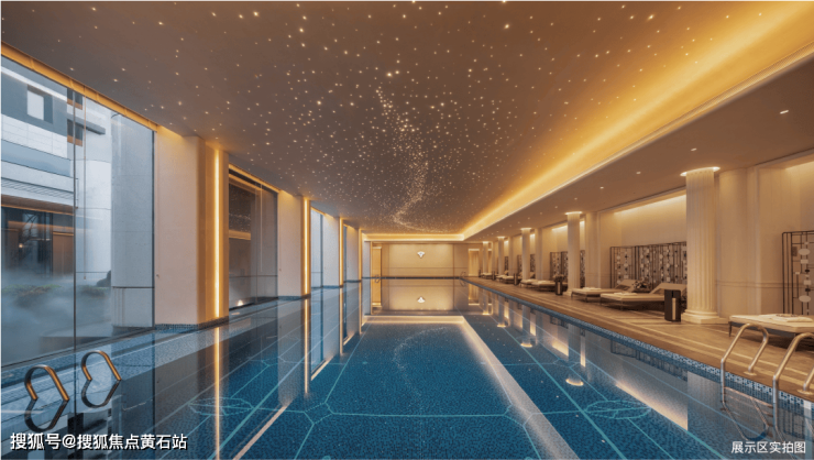 奢朗尺度,打造满水式流体游泳体验,泳池以奢材定制,高品质美学致敬城市。
