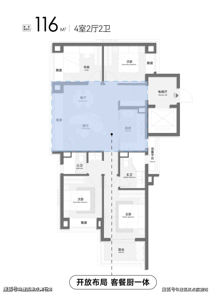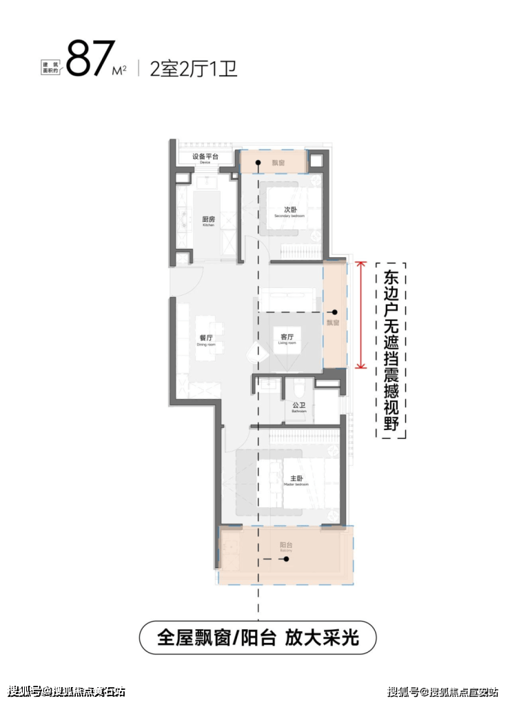 建面约85㎡的黄金稀缺两房户型