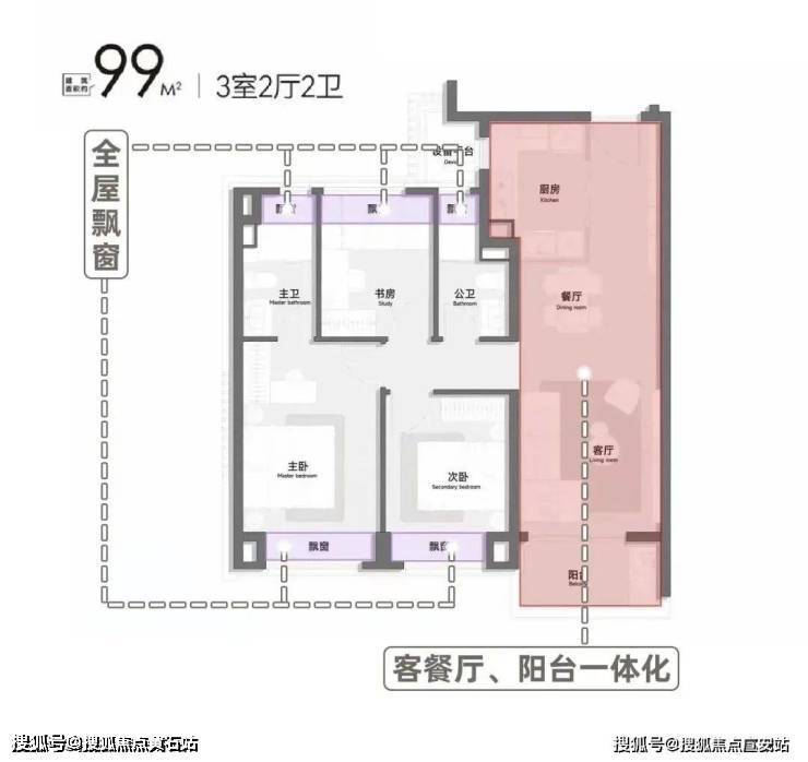 收纳方面,则预留超大玄关及电视柜收纳功能,收纳尺度超9米,仅客厅墙面即可创造约15立方米收纳空间,轻松满足家居储物需求.带阔绰景观大飘窗的建面约99㎡誉·和户型