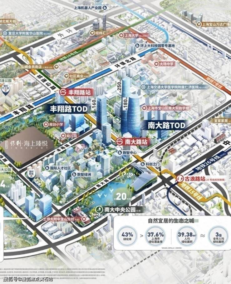◐ 南大智慧城核心区已落地上师大附中宝山分校(市级实验性示范性高中)已开始招生。