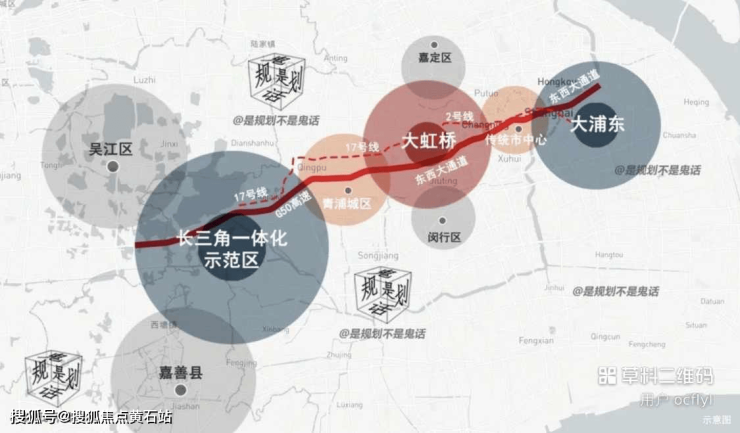 青浦区基于“一城两翼,一带三核”发展战略目标,正着力推进东翼(赵巷商业商务区+西虹桥商务区)发展为一流的现代服务业集聚区。并通过17号地铁线串联起三大核心节点,东起徐泾北斗产业基地,西到金泽华为研发基地,中部核心就是赵巷市西信息软件园,未来这条产业带上预期将会有海量人口导入。赵巷高新科创地持续补强大虹桥,成为推动经济发展的新引擎。