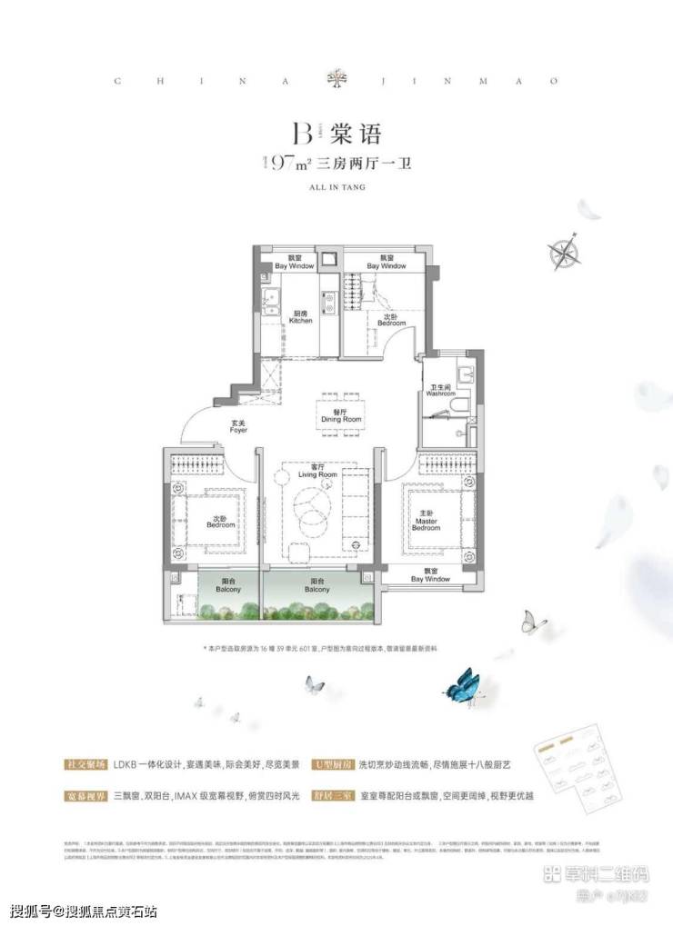 建面约97㎡,参考总价410-490万,三室两厅一卫