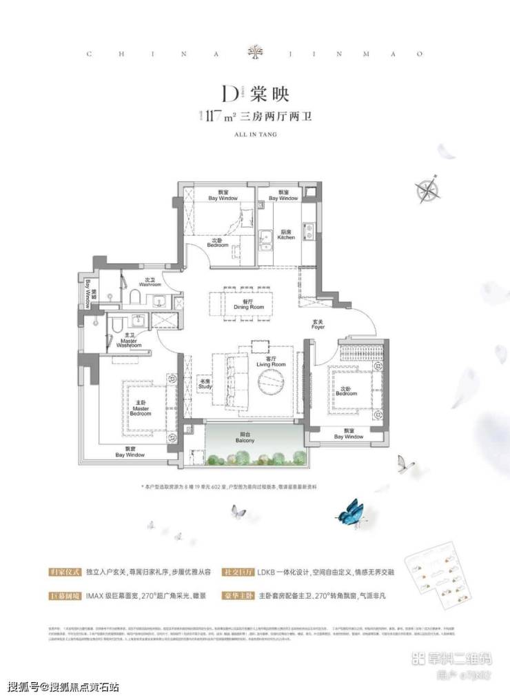 建面约117㎡,参考总价530-660万,三室两厅两卫