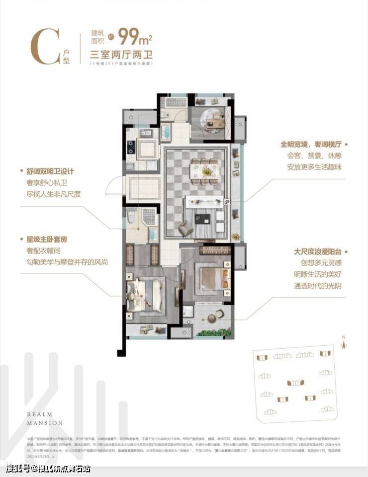 面积:79平(三房两厅一卫)、89平(三房两厅两卫)、99平(三房两厅两卫)
