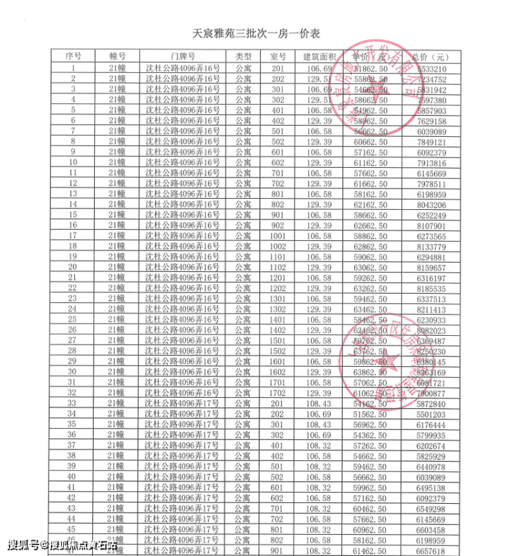 象屿天宸雅颂·房价一览表