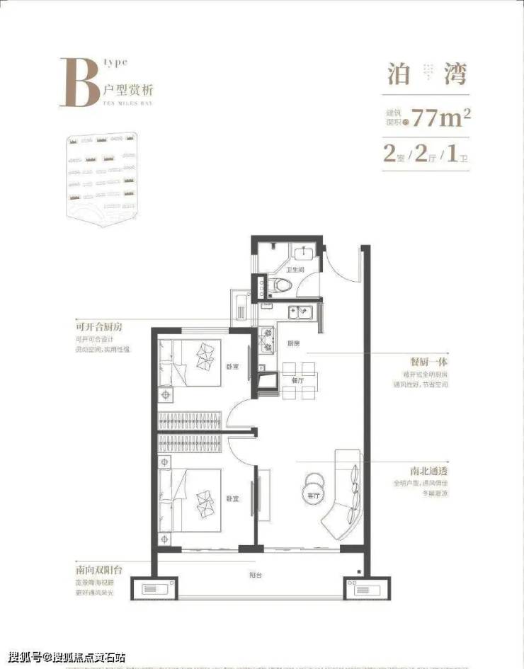 在售户型:57平一房,77平两房,100平三房,106平复式