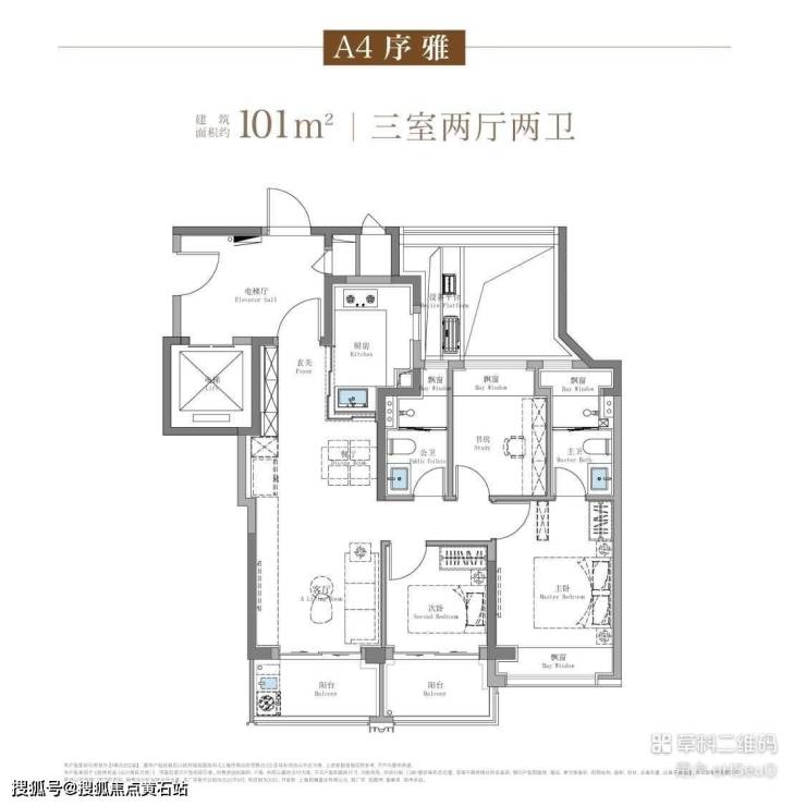 招商序100-103㎡ 三房两厅两卫 | 南向双阳台,餐客一体,尺度从容