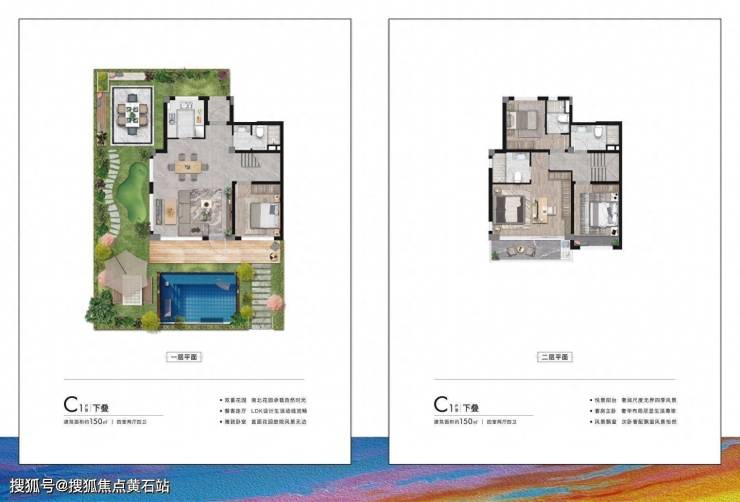 下叠边套花园面积约90平,一楼层高3.2米,二楼层高3.0米,参考总价560-570万;