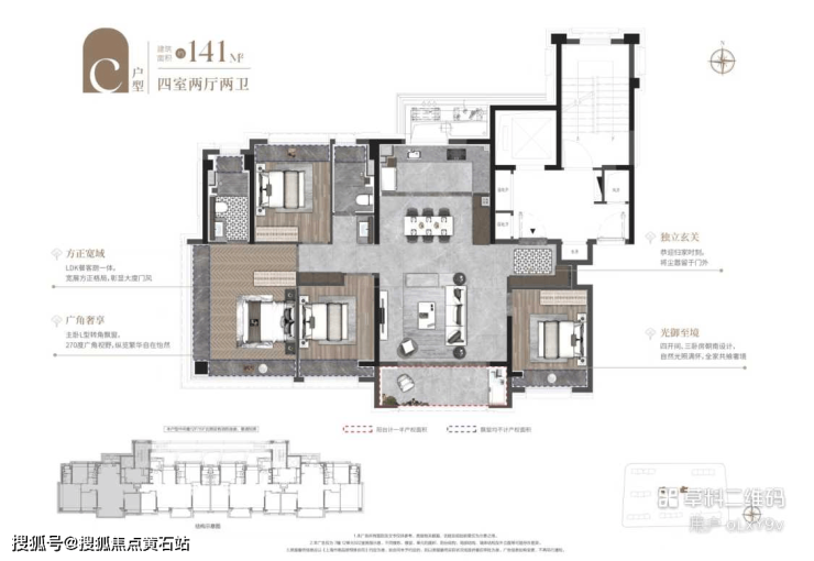 建面约141 ㎡四房两厅两卫