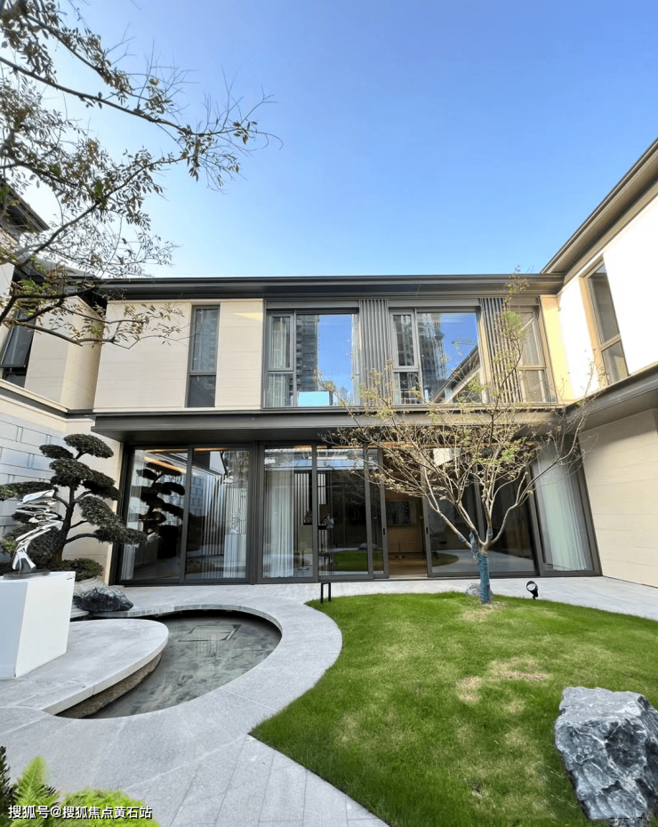 闵行天宸国际社区各户型均纵向分层,互不干扰。首层为三代同堂空间,根据户型的不同,庭院开间约7~12米,客厅开间约8~12米,二层为私密独立卧房,地下二层为社交会客空间,地下一层为书房、茶坊、客房等多功能空间。