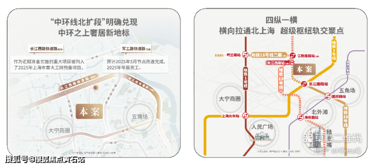 如今,吴淞被赋予新时代使命:上海发展“核爆点”,吴淞创新城先行区。随着“中环线北扩段”兑现、军工路快速路开工、长江西路快速路列入重大工程规划,淞南正式进入“中环时间”。四纵一横轨交聚点(1/3/18/19号线),长江西路站约150米直线距离,1站江杨南路、5站复旦大学、7站五角场,迅捷链通城市核心。