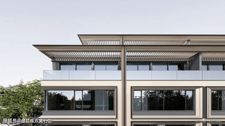 叠墅的外观设计大面积运用了玻璃,部分区域则采用了石材和铝板线条进行装饰,而山墙部分则涂上了涂料。