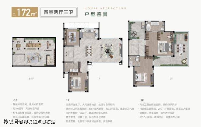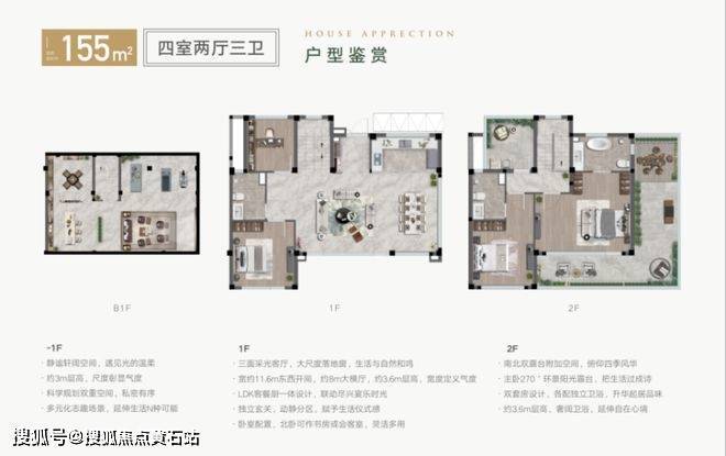 与此同时,居然做到了约3.6米的阔绰层高+270°转角露台+高度约3-5.4米、大尺度采光井的地下室。将视野景观进行全角度地拉伸的同时,更展示出真·别墅产品独有的气场。