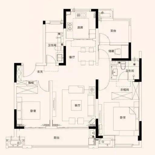 餐客厅相连,客厅3.8米大开间,格局紧凑,无面积浪费;