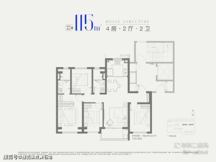115㎡四房两卫(四期):总价500万起,一梯两户,四开间朝南(三房+客厅朝南),南北通透,奢阔空间尺度,适配多子女家庭或三代同堂。