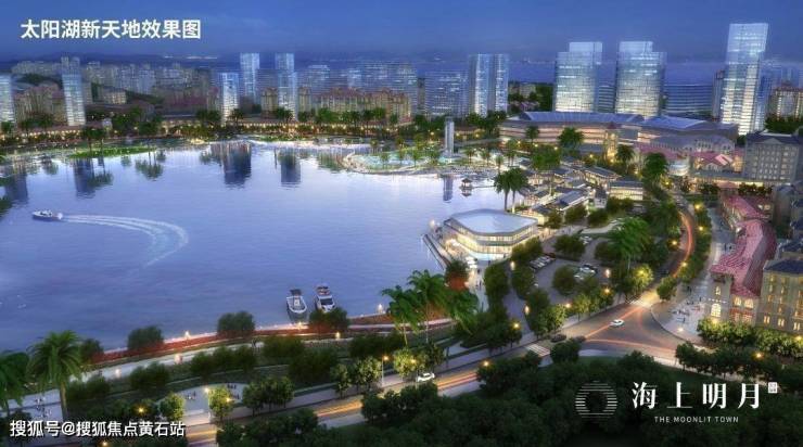 太阳湖新天地——20万方太阳湖,由景观中心、商业中心、休闲中心、生活中心组合而成,并设有花火水秀。
