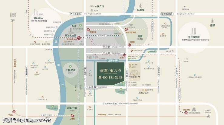 浦东正通过约22.3公里的世博水环,打造“烟火之环、文化之环、生态之环",串联前滩、三林等热门板块,与黄浦江衔接成“O”字环形。本案北邻世博水环生态步道,占据“阳光三林”和'林浦莺飞”双景点。未来沿水将形成主题化、特色化功能的有机聚合,催生新一代国际滨水生活区。