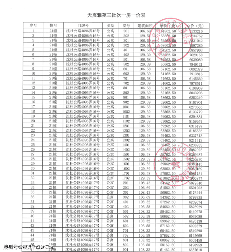 象屿天宸雅颂·房价一览表