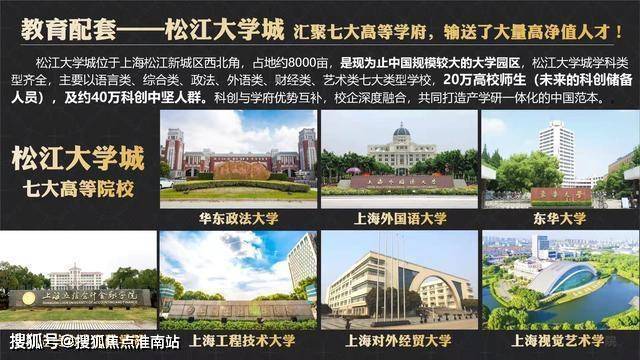 教育配套:包玉刚实验学校、上海赫德双语学校、上海西外外国语学校、阿德科特学校、爱菊小学(园区规划)、全国较大的松江大学城等;