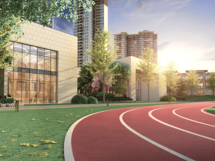 无边境泳池、规划幼儿园、九年制规划学校、环步跑道等