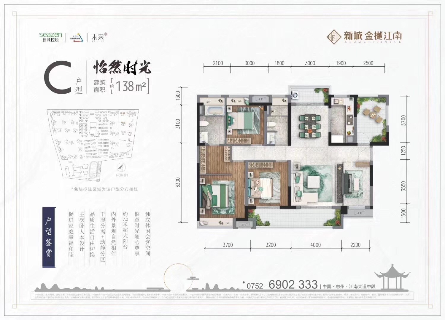 新城•金樾江南,落位于惠州博罗江南新区,毗邻东江,环境优异,自然资源丰富,属于生态宜居板块。作为新城控股落子惠州的排名前列“樾”系产品系列,基于得天独厚的自然生态资源优势,公司以金山湖为设计蓝本,萃取滨江景观精华并融合新中式风格,斥巨资打造近百万方深莞惠三城一体中心住区。同时,项目遵循自然景观美学和中式造景理念,以惠州书院文化、四东文化及月相变化为设计灵感,从时节、季节及嗅觉、视觉等多维度打造园林景观体系,将游赏功能与居住功能紧密结合。