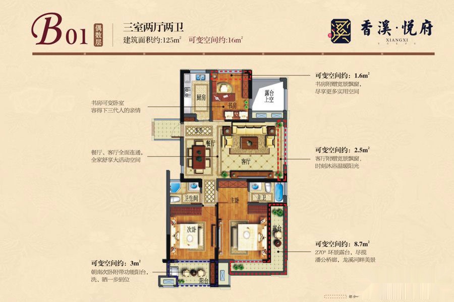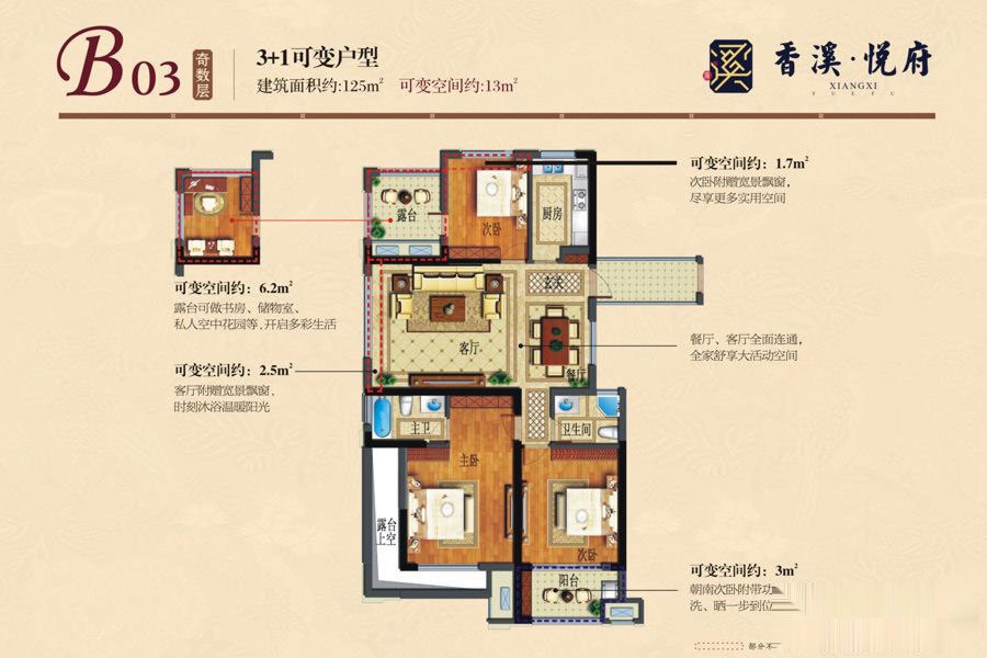 3室2厅2卫-B03奇数层 3+1可变户型