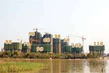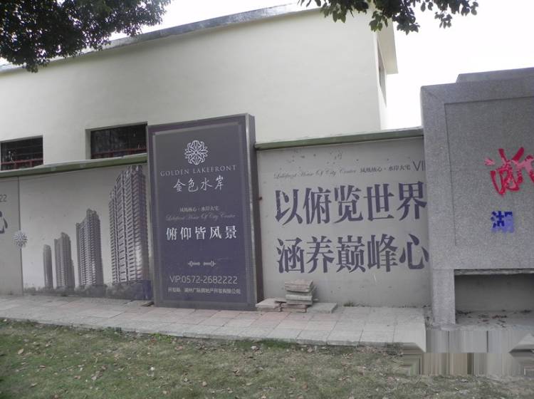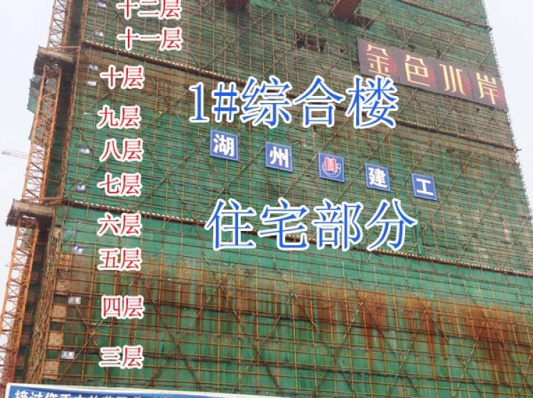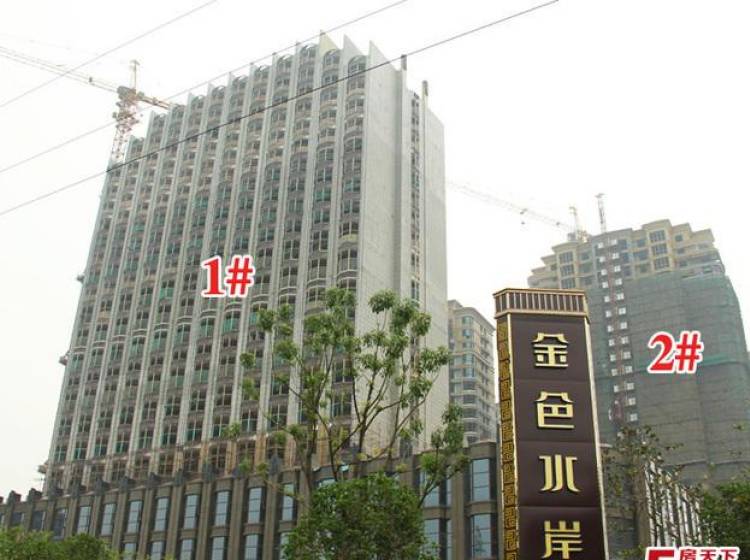 金色水岸由湖州广际房地产开发有限公司开发,是其2009年10月份拍的FH-11D1号地块,出让面积为61294㎡。以4亿4百万的价格竞得,规划有住宅和商业。项目位于凤凰区域、中兴大桥南堍西侧,东临体育场路,北隔旄儿港与市民广场、行政中心和仁皇山相望。项目总建面约19万方,由9幢高层、12幢联体别墅和1幢综合楼组成。