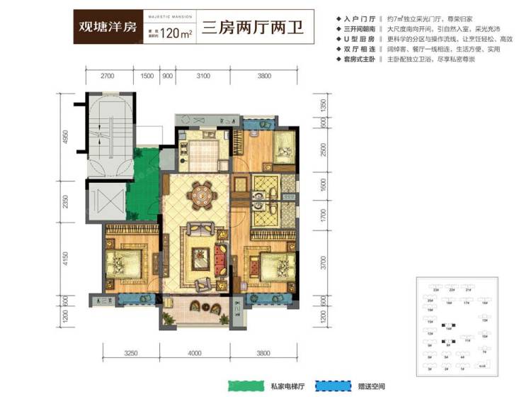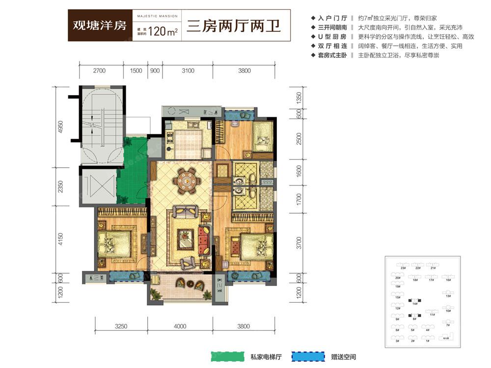 项目分为一二三期,总占地约106亩,拟建幼儿园,商业和住宅物业,地上总建筑面积约17万方,容积率为1.8,其中一期地块包含商业街及住宅小区;二期地块南北向规划三幢住宅,幼儿园。对外销售部分为三期,设计两种户型,建面约120㎡三房小高层和160㎡四房叠墅,共254套。
