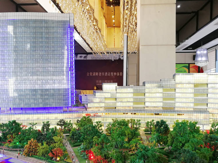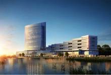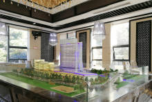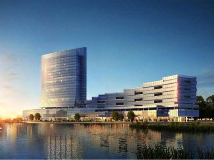 广弘·华美达广场由广东中山市广弘集团有限公司旗下湖州广弘置业有限公司投资开发建设经营,是广弘集团在南浔倾力打造的五星级酒店项目,是继海宁华美达广场酒店后的又一力作。项目总用地面积22521平方米,总建筑面积逾85726平方米,其中地上面积约63233平方米,建筑密度:33.2%;容积率:2.5;全日制厅约1140平方米,可容纳用餐人数在880人左右;宴会厅面积约为1150平方米,可容纳用餐人数约为80桌890人左右;水疗馆约为1970平方米;酒店和公寓总车位地下218个,地上56个;园林绿化占地面积约为2.4万平方米;总投资约7亿元人民币,将引入全球高级酒店管理集团——温德姆酒店集团旗下著名品牌华美达广场酒店担纲酒店运营管理。 项目凌踞南浔新区核心,毗邻南浔古镇,屹立金象湖公园区块内,南面正临金象湖500亩湖面,地理位置优越,自然景观丰富。项目聘请深圳设计单位,融合粤港先进设计理念,结合项目所在区位特点,以商务休闲、自然生态、富有活力三大要素为基本理念,遵循以追求别具一格、充满活力的建筑形体、完善的酒店功能、以及充满人性化的景观绿化为原则,引入“船帆”的设计概念,将形似“风帆”的酒店主体与裙楼巧妙结合,采用S形微曲线建筑布局,与南面金象湖公园景观相协调,形成两个建筑环境空间,共同构建具有视觉冲击力的南浔城市新名片。同时,融入生态绿化的设计理念,设计多层次露台,较大限度的利用东侧及南侧金象湖公园的自然资源,与公园的绿化形成三维一体的生态绿化景观,呈现给南浔市民一个轻松愉悦、环境优雅,舒适的城市商务休闲型商务假日酒店。 整个建筑由3层裙楼、一栋23层主楼及一栋10层副楼组成,裙楼布置会议、酒店餐厅、精品店、大型宴会厅、水疗馆等配套服务及设施;23层主楼涵盖行政套房、商务客房等共330余套。10层副楼将打造成南浔高级企业家会所,为南浔先进企业家提供独具稀缺景观资源、五星级酒店服务的商务会晤及企业交流展示平台会所。项目除配备区内少有超2000平方米宴会厅、多功能商务会议中心等酒店配套。