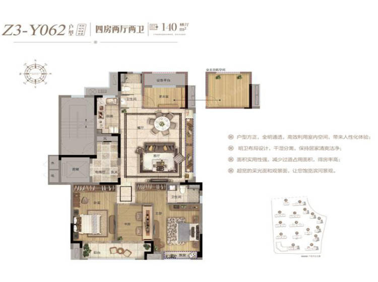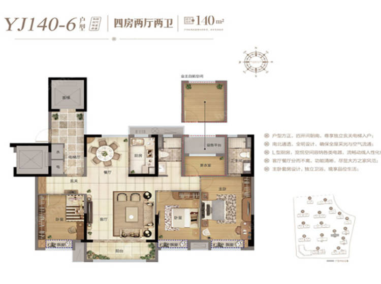 4室2厅2卫-140㎡户型, 4室2厅2卫1厨
