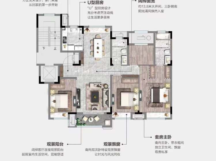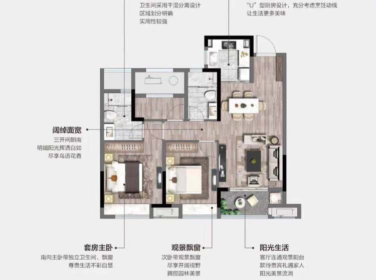 在售 南北通透 户型方正 全明格局 客厅朝南 主卧朝南 主卧带卫 干湿分离 飘窗