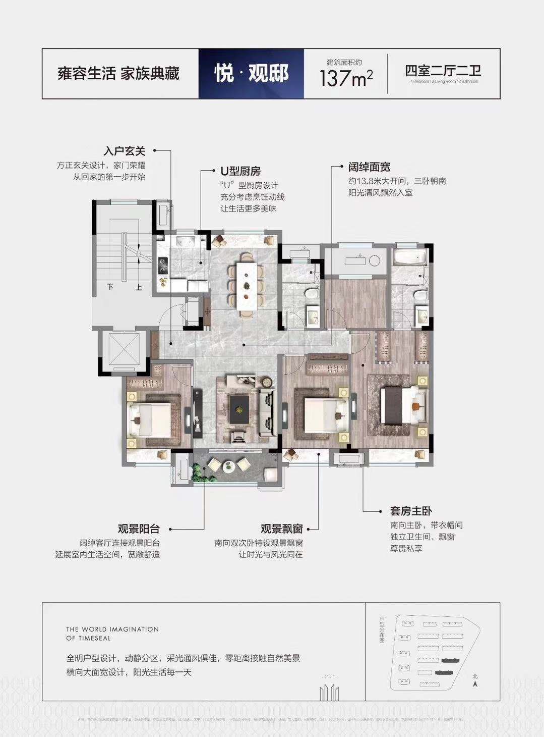 在售 南北通透 户型方正 全明格局 客厅朝南 主卧朝南 带衣帽间 主卧带卫 干湿分离 飘窗