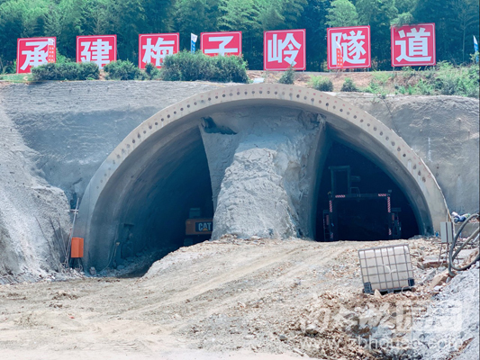 梅子岭隧道左洞总长363m,右洞总长321m,目前右洞进尺22m,左洞完成洞口施工。计划于2020年4月底全面贯通。