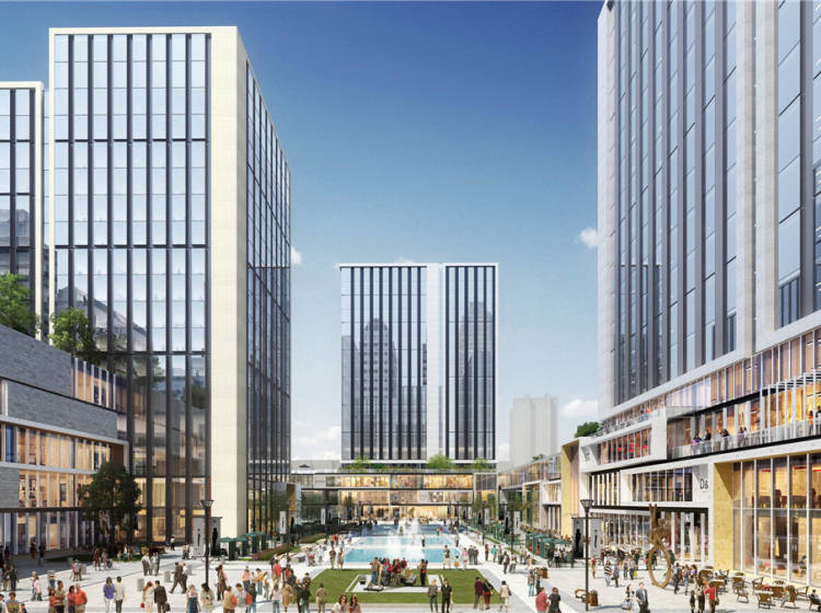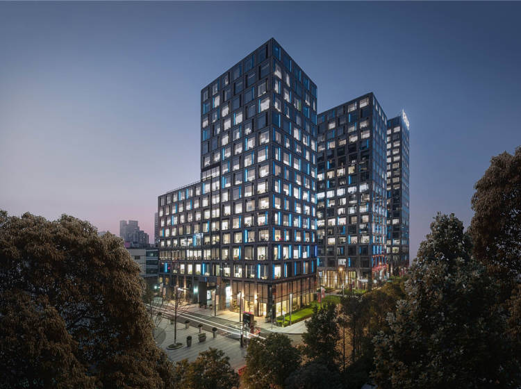 近8万方商业空间组成,它以知识经济为纽带,创构了一个集商务、商业、教育、文化、餐饮等于一体的完整城市性生态系统。