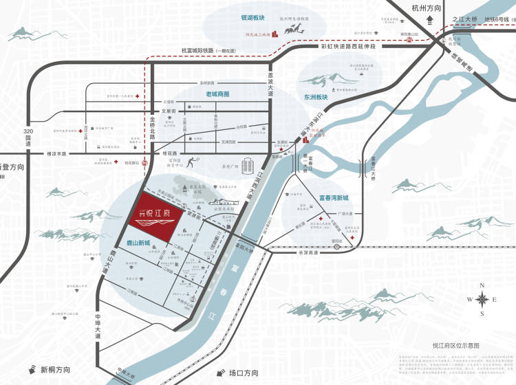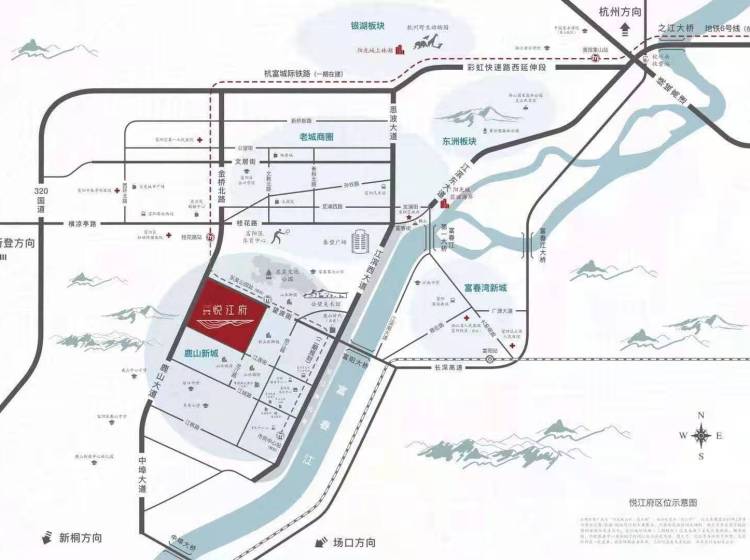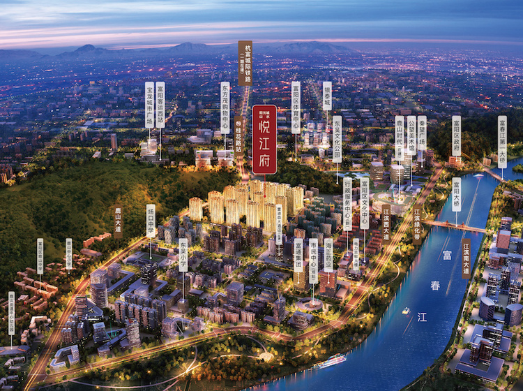 阳光城山水·悦江府,立于富阳鹿山新城之上,近邻富春江。作为背靠鹿山、面朝富春江的富阳新城,鹿山新城不仅拥有优渥的自然资源与深厚的文化底蕴,更在融杭和拥江发展的时代背景下,鹿山新城被定位为“行政服务心、文化运动核、创新创业城、生态宜居地”,成为富阳版的“钱江新城”。