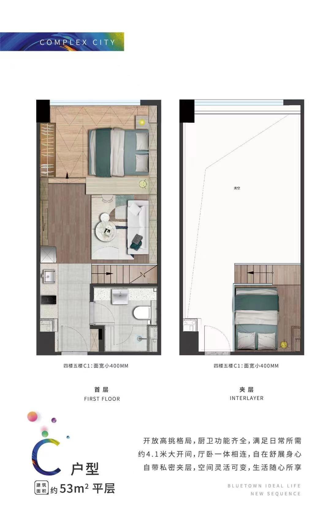 国际公寓:建筑面积段约29-51㎡,全精装设计。首开房源户户瞰江,而且是极为少见的270°江景。总价低不限购,投资自住皆相宜。