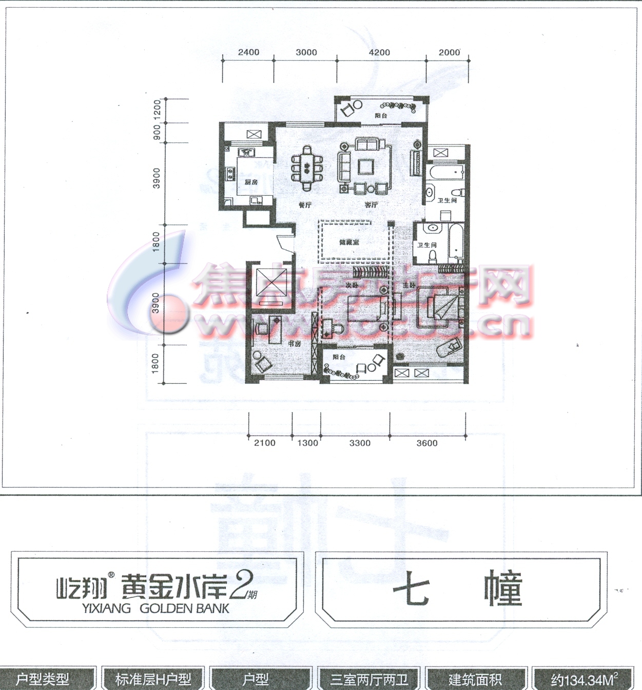 0室-黄金水岸7幢三室两厅两卫约134.34平米