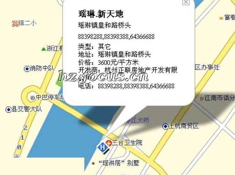 瑶琳.新天地假日公寓.以北是天目溪,是富春江的支流,西面是桃源溪,南是瑶琳镇.