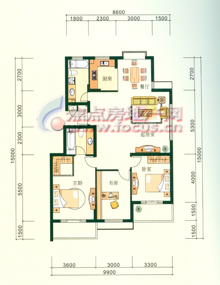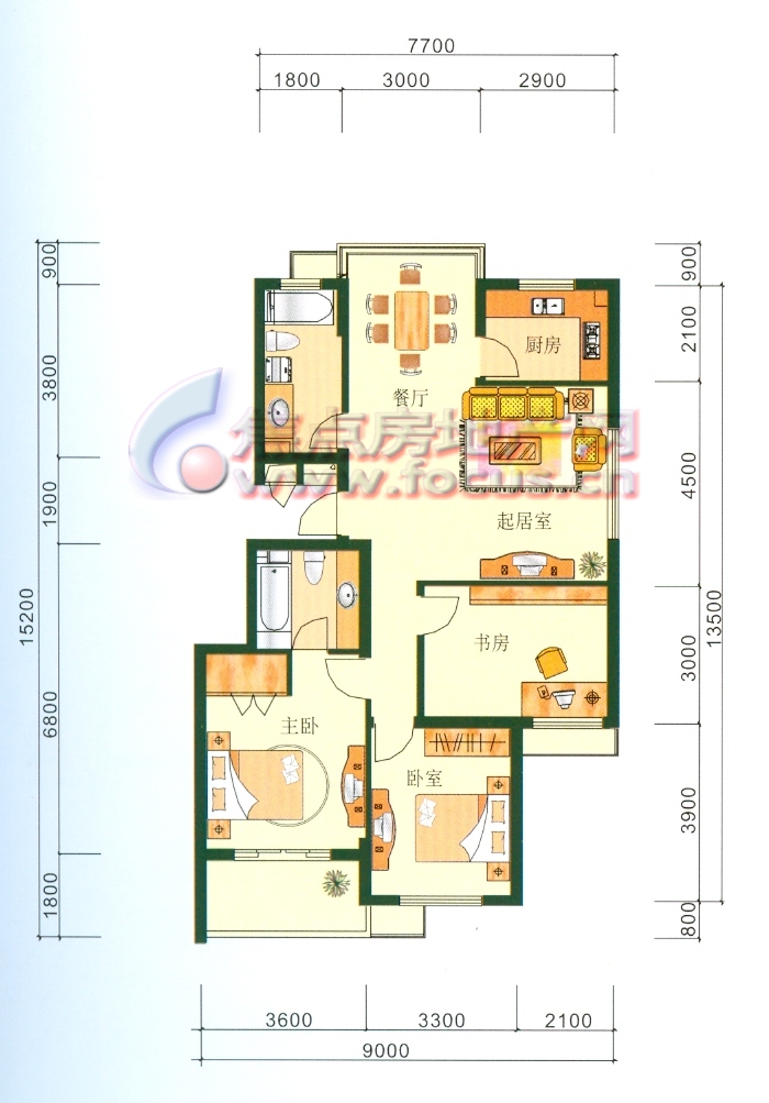 0室-容大-五环城市花园 J型 三室两厅二卫 115.38平米