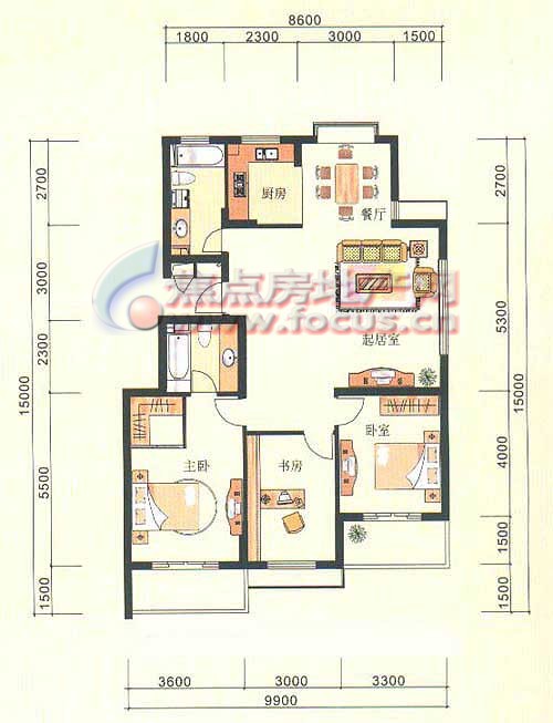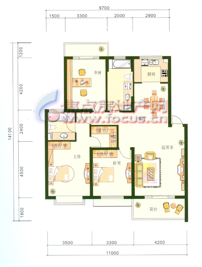 0室-容大-五环城市花园 F型 三室两厅二卫 125.6平米