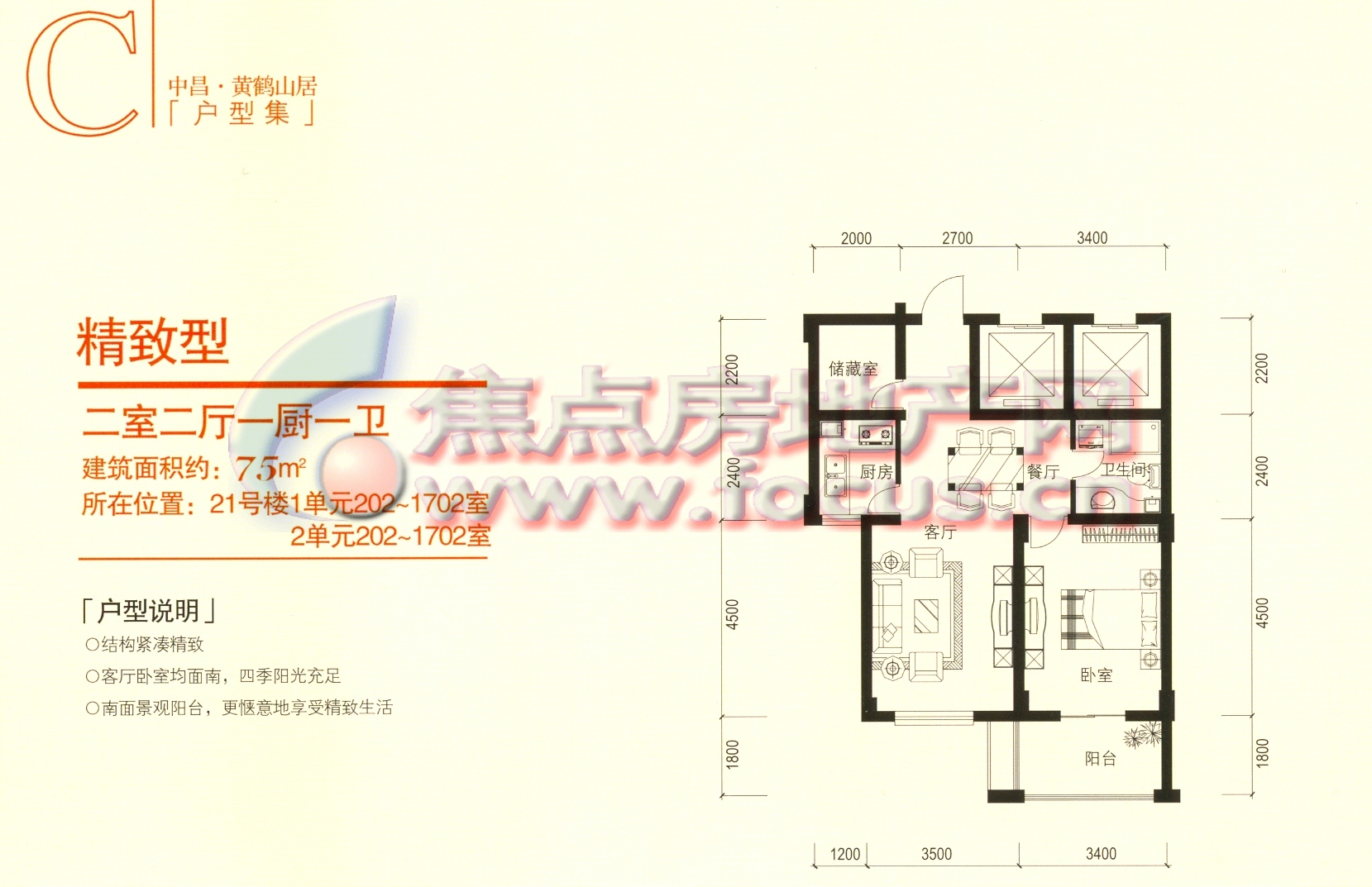 0室-黄鹤山居C型二室二厅一厨一卫约75平米