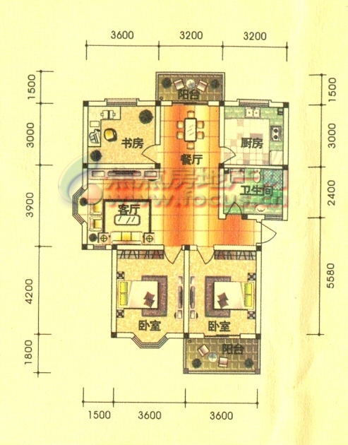 3室2厅2卫-森淼径香苑D型108平方米3室2厅2卫