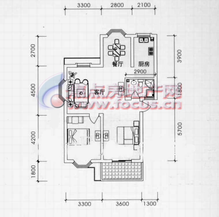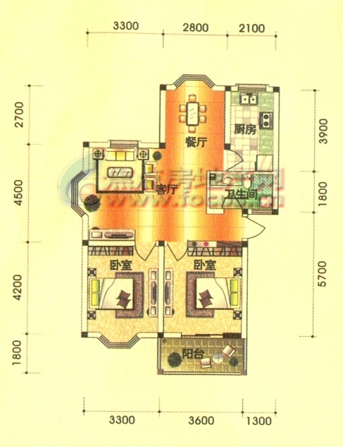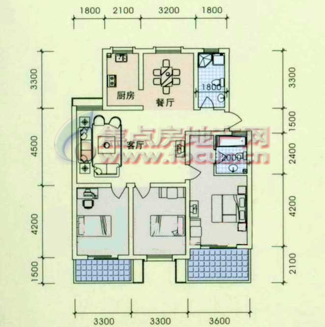 2室2厅1卫-森淼径香苑B型95.15平方米2室2厅1卫