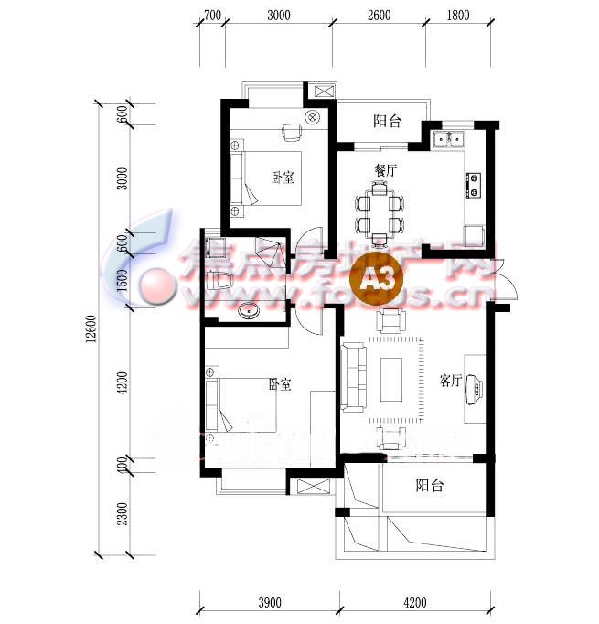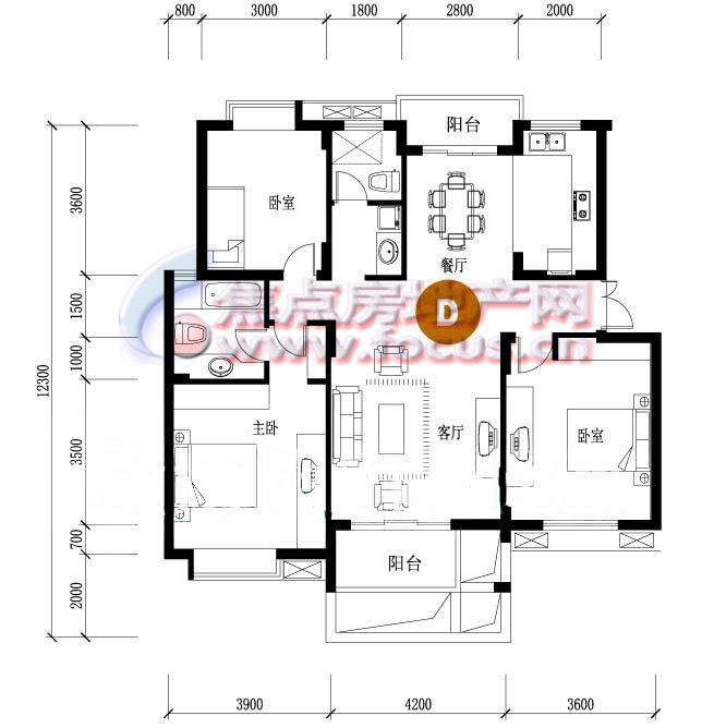 3室2厅2卫-中尚橄榄树花园 3室 2厅 2卫125.50平方米.